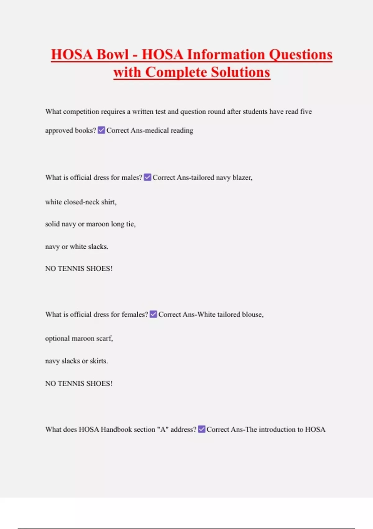 What does HOSA Handbook section "A" address? Correct Ans-The introduction to HOSA