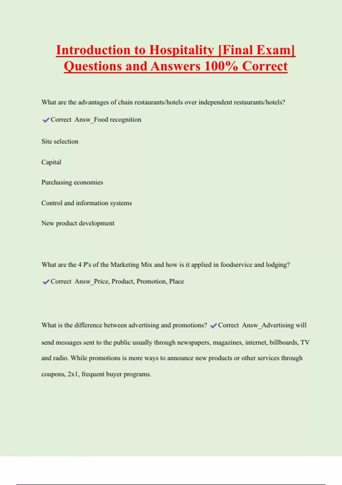 Questions and Answers 100% Correct