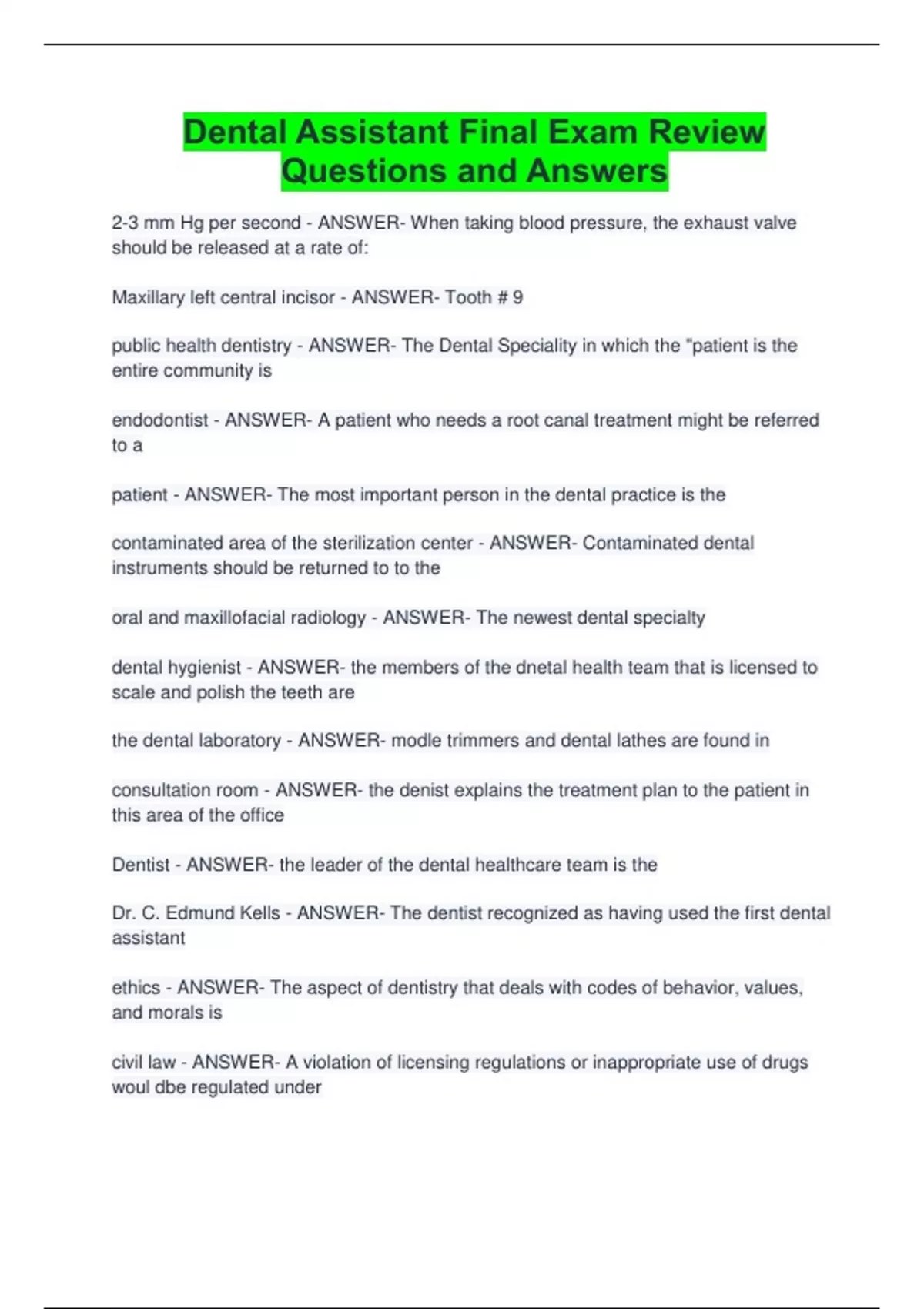 Dental Assisting National Board - ANSWER- the credential of certified dental assistant,