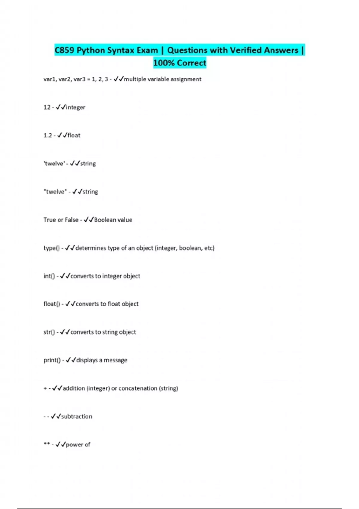 C859 Python Syntax Exam | Questions with Verified Answers | 100% Correct