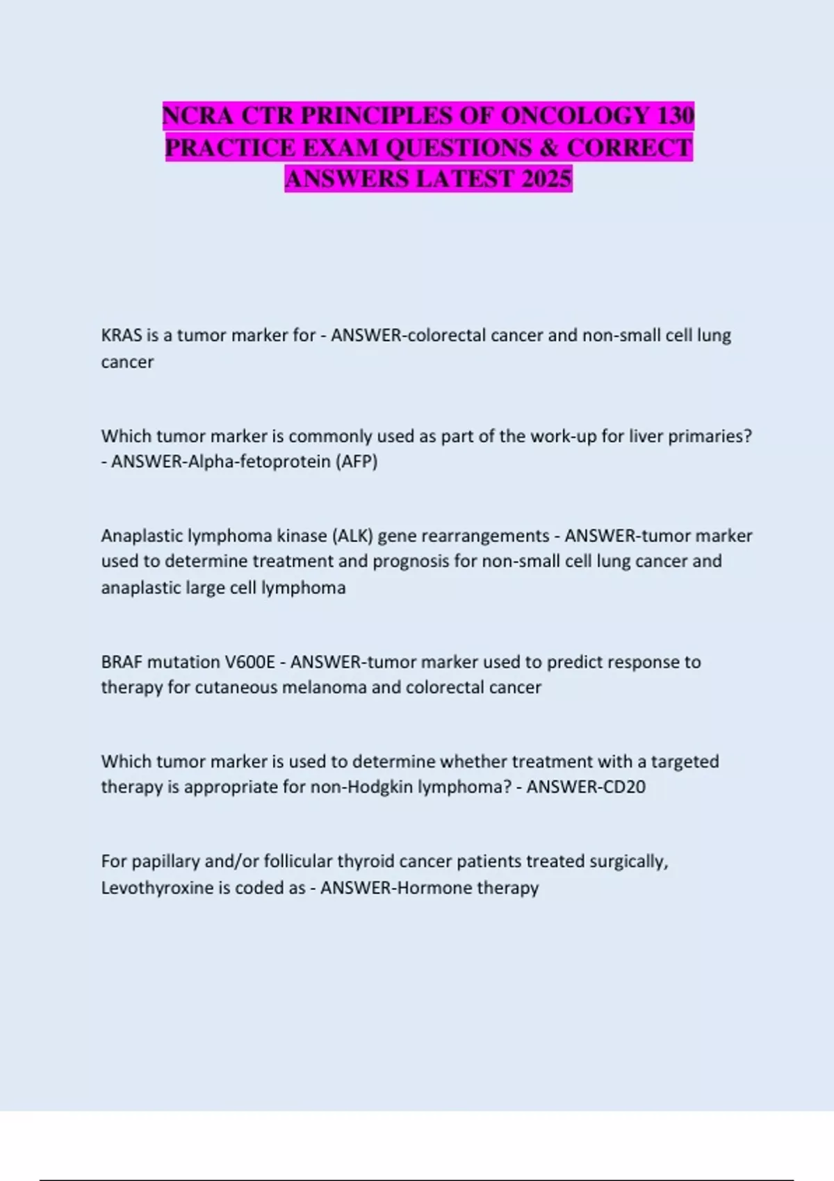 NCRA CTR PRINCIPLES OF ONCOLOGY 130 PRACTICE EXAM QUESTIONS & CORRECT ANSWERS LATEST 2025