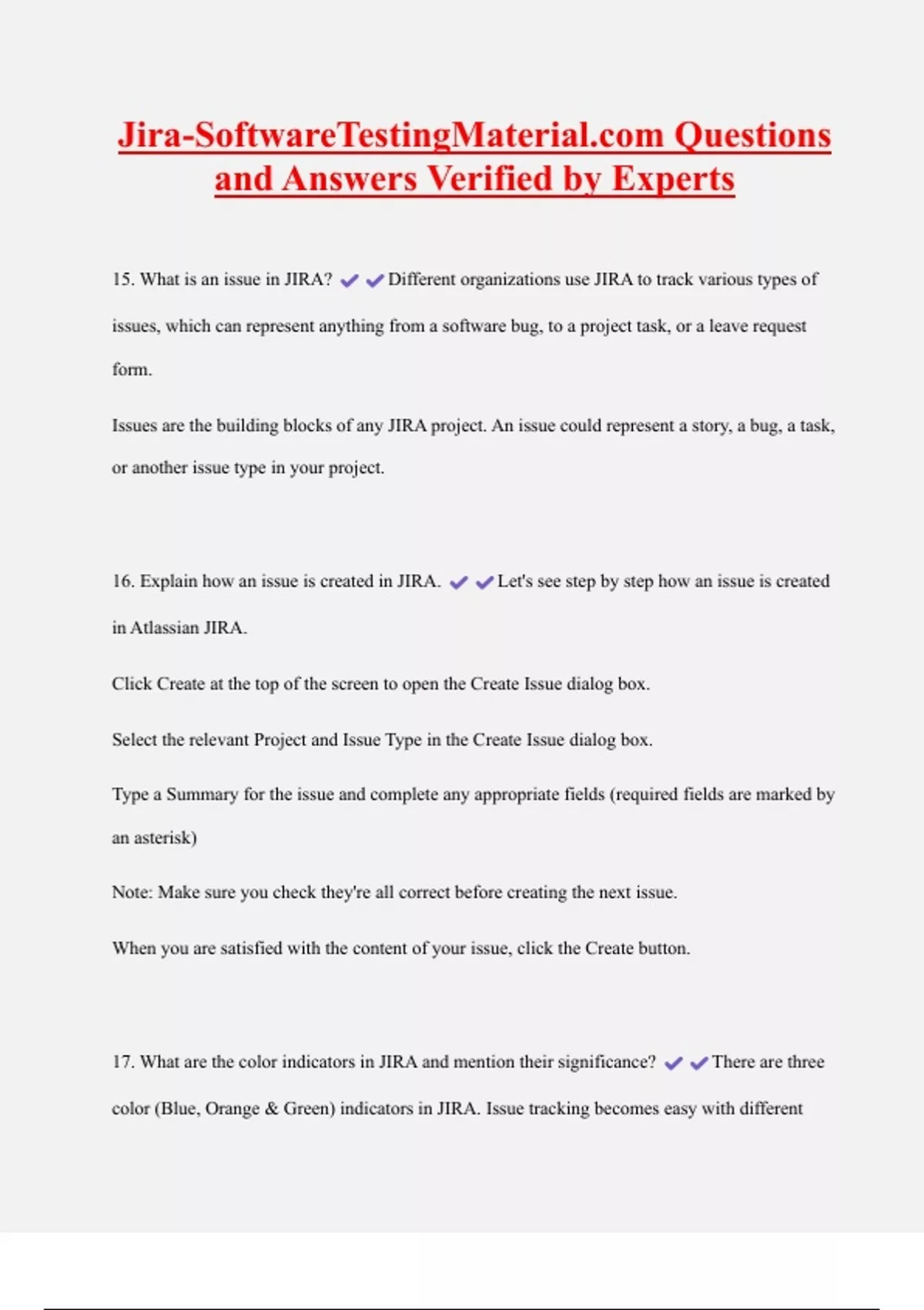 Jira-SoftwareTestingMaterial.com Questions and Answers Verified by Experts