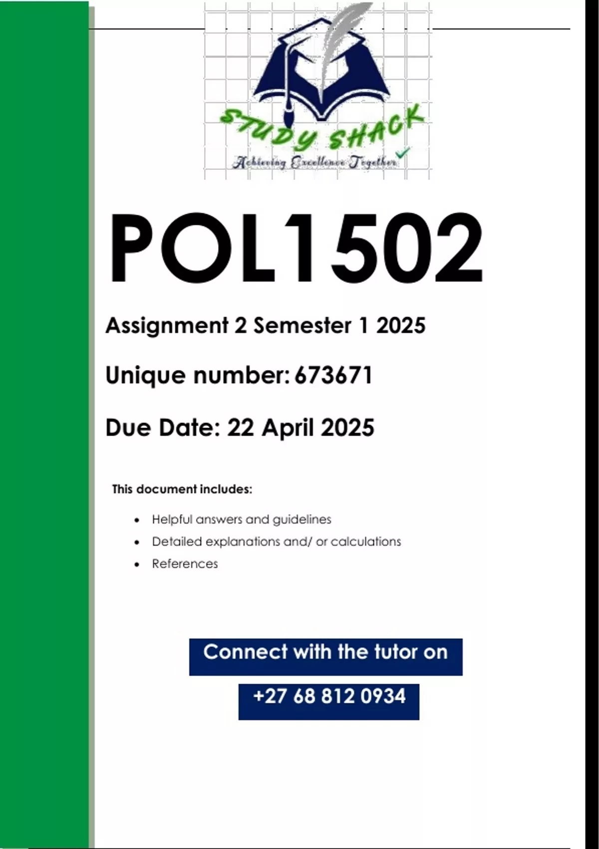 POL1502 Assignment 2 (QUALITY ANSWERS) Semester 1 2025
