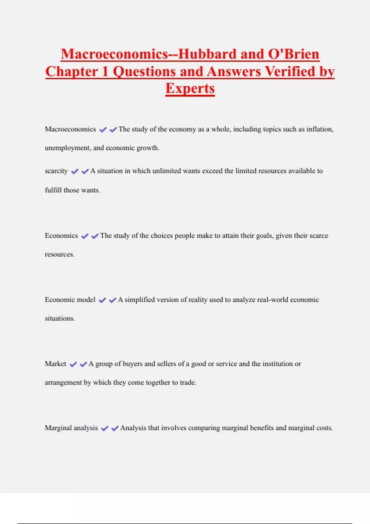 Macroeconomics--Hubbard and O'Brien Chapter 1 Questions and Answers Verified by Experts