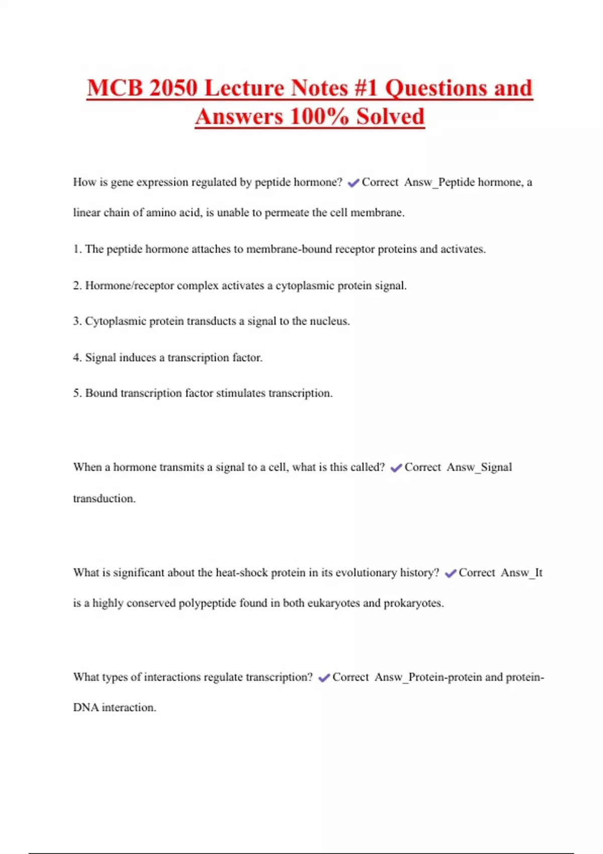 How is gene expression regulated by peptide hormone? Correct Answ_Peptide hormone, a