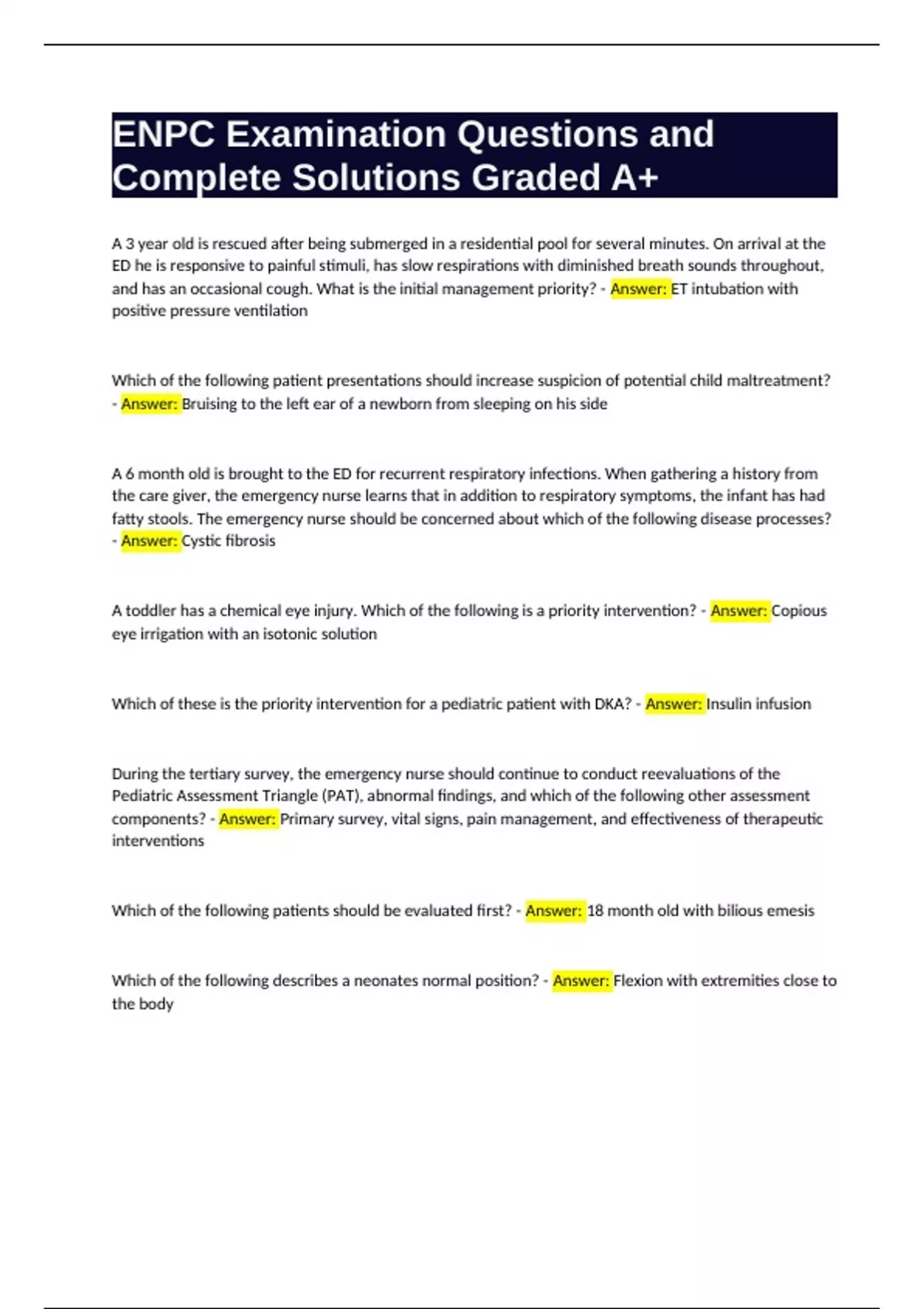 prior to arrival. Which of the following is the priority assessment or intervention? - Answer: Assess the