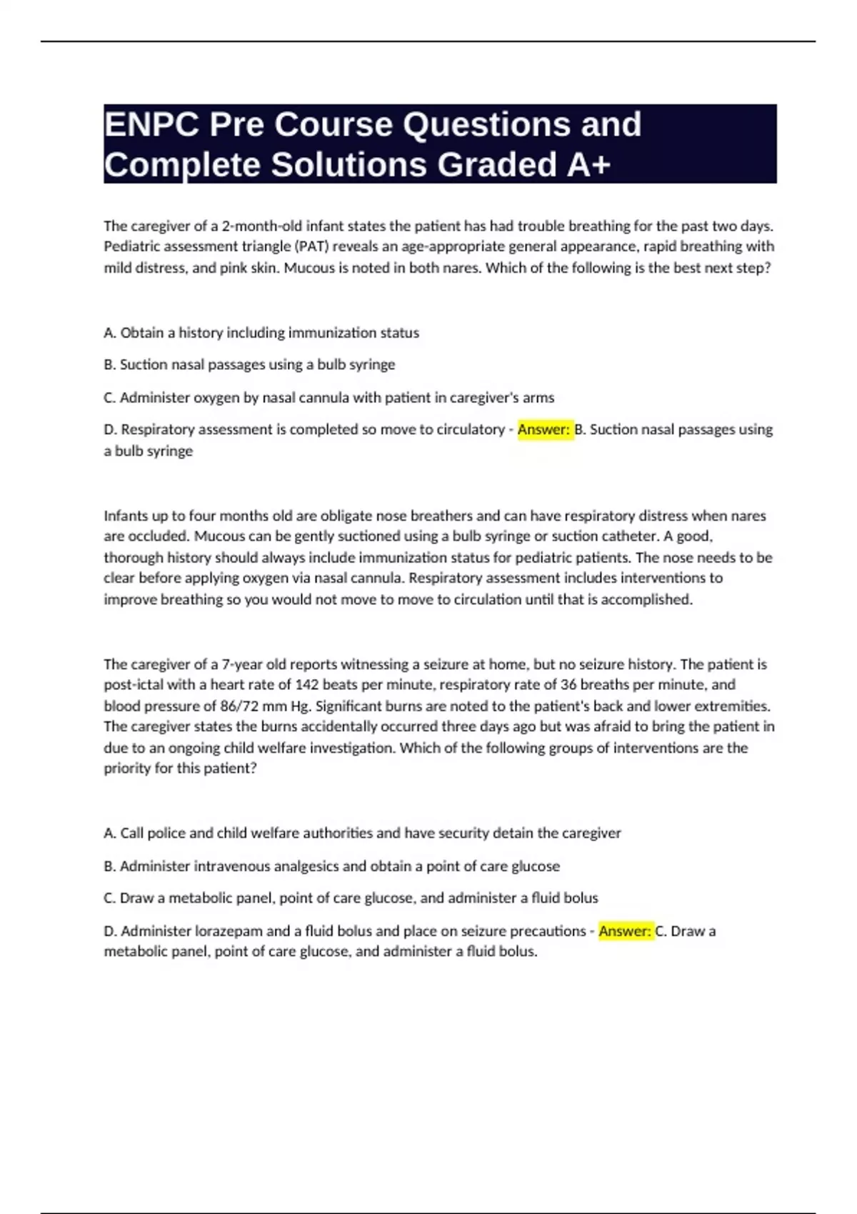 ENPC Pre Course Questions and Complete Solutions Graded A+