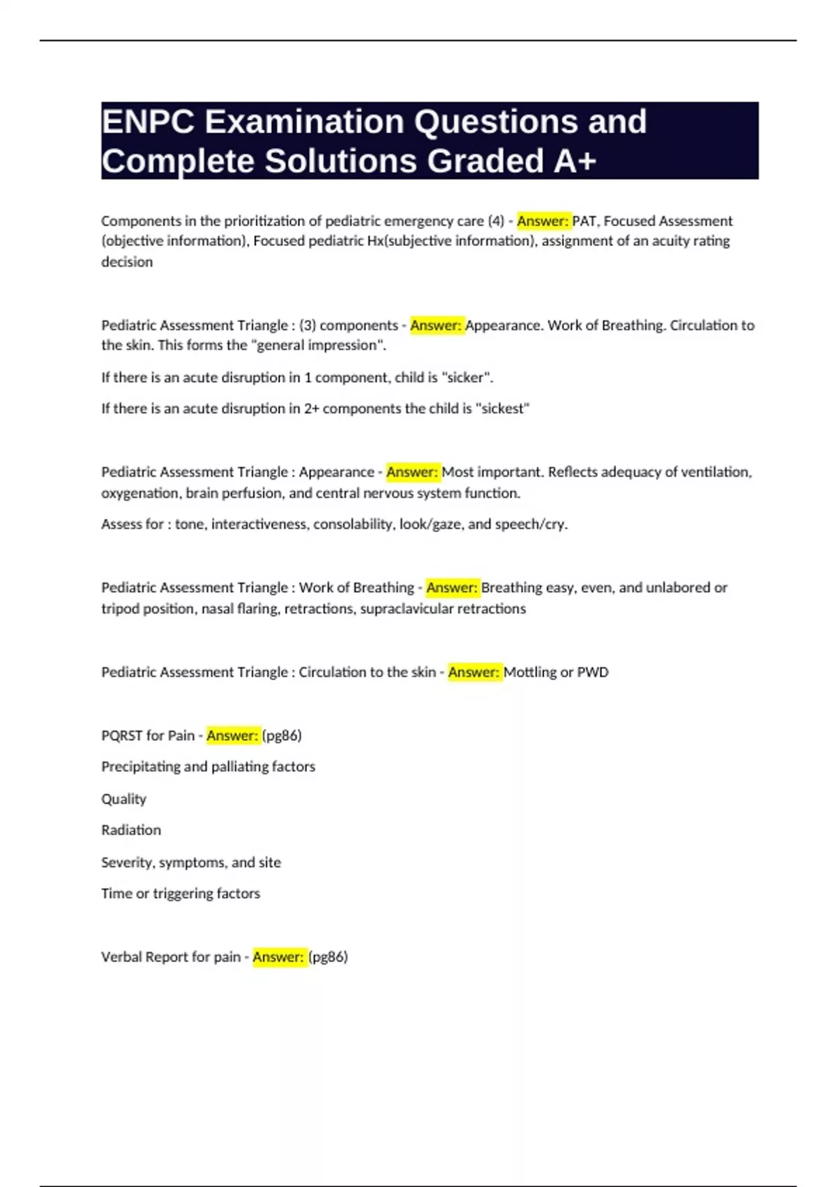 Pediatric Assessment Triangle : (3) components - Answer: Appearance. Work of Breathing. Circulation to