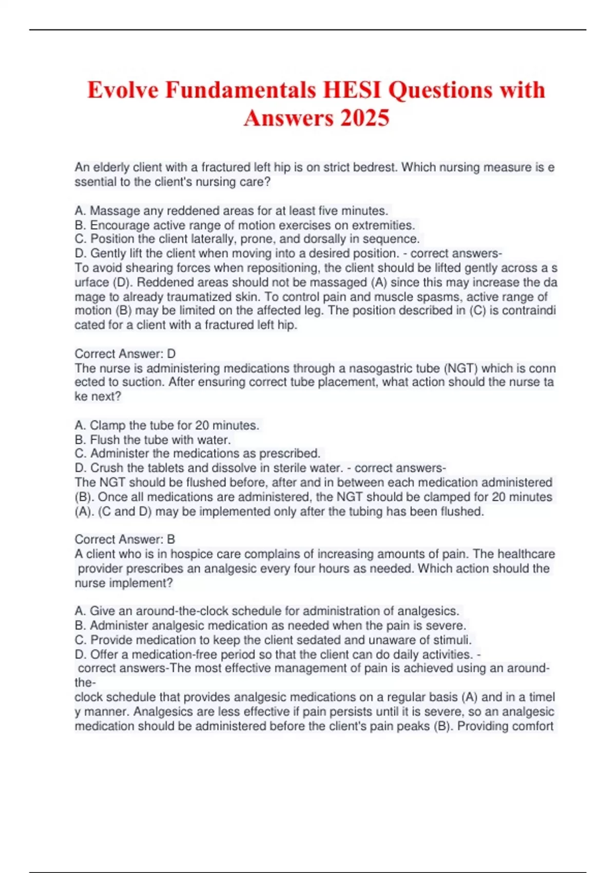Evolve Fundamentals HESI Questions with