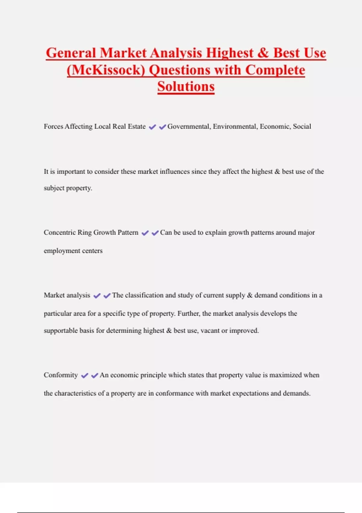 characteristics of a property are in conformance with market expectations & demands. It applies