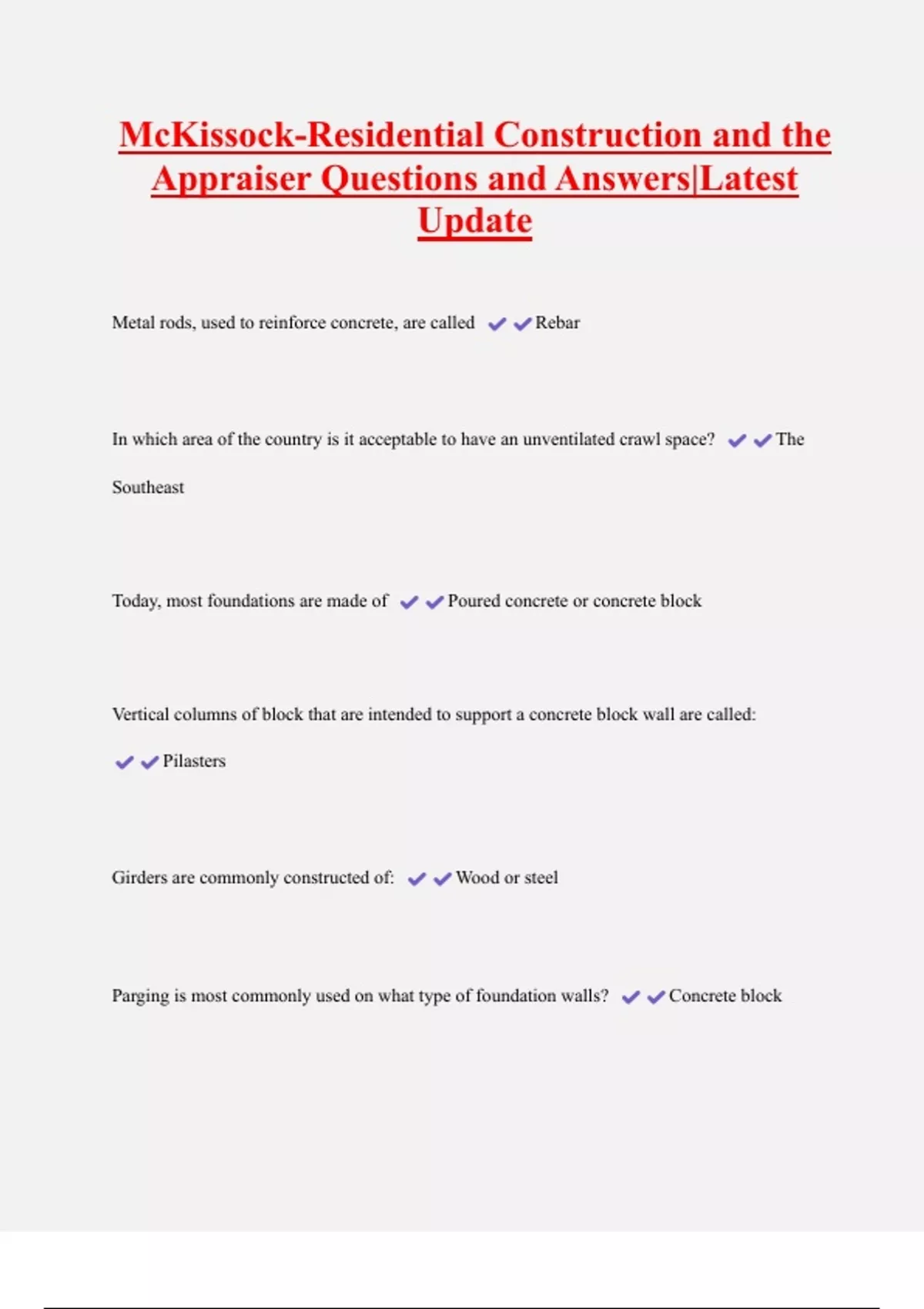 McKissock-Residential Construction and the Appraiser Questions and Answers|Latest Update