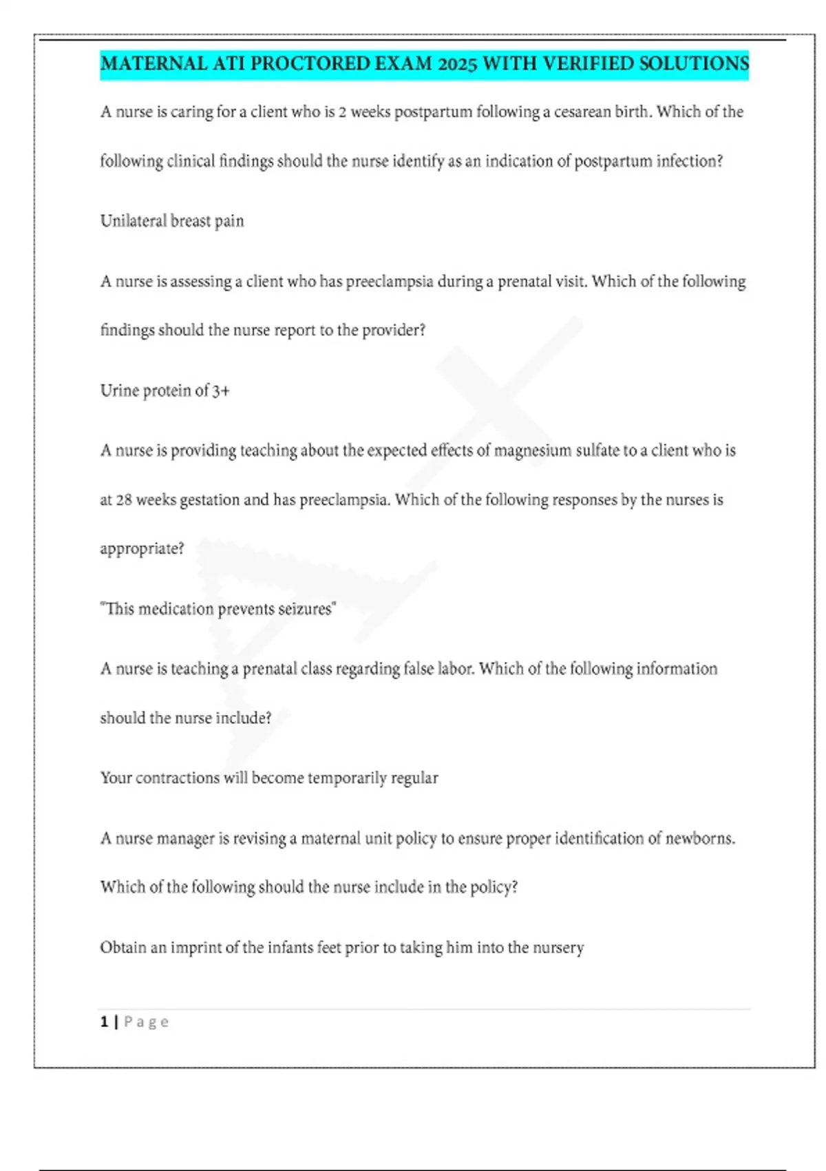 MATERNAL-NEWBORN ATI PROCTORED EXAM 2025 WITH VERIFIED SOLUTIONS