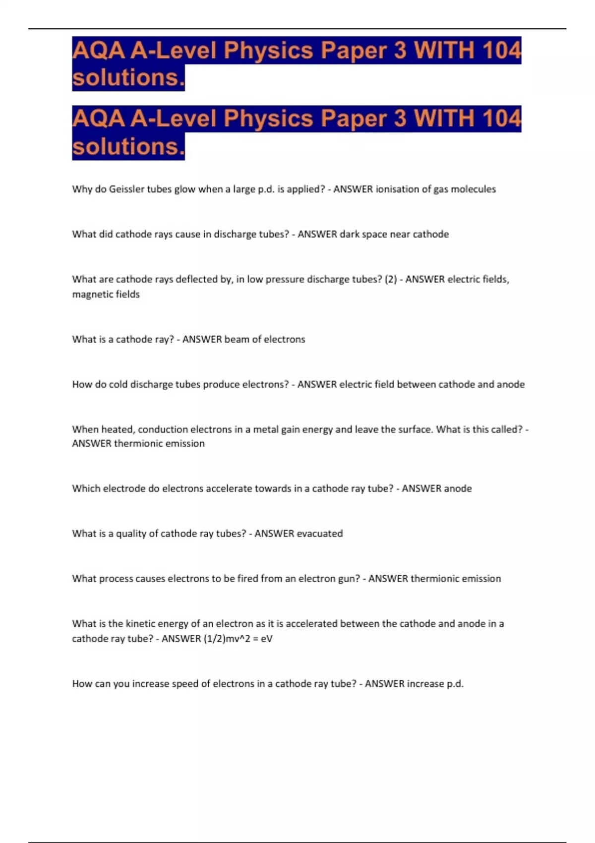 , AQA A-Level Physics Paper 3 WITH 104
