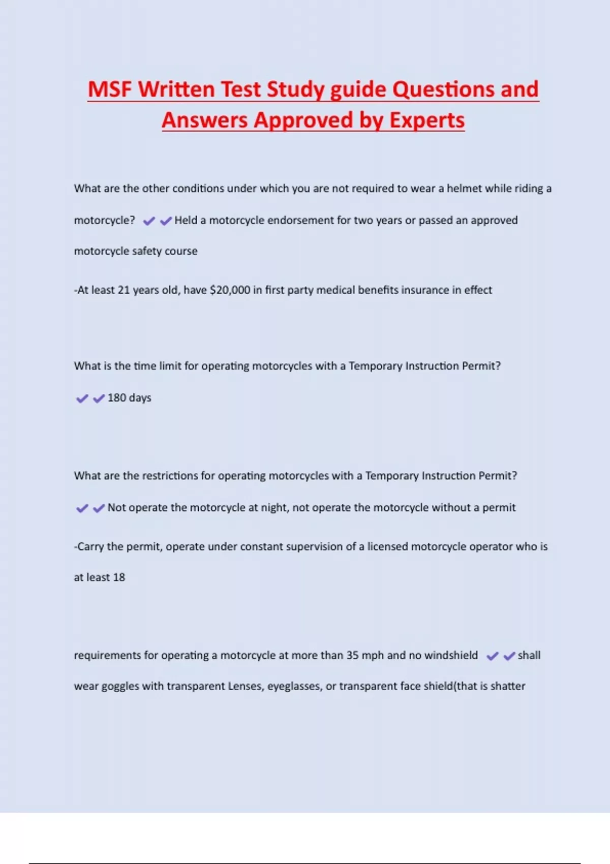 requirements for operating a motorcycle at more than 35 mph and no windshield shall