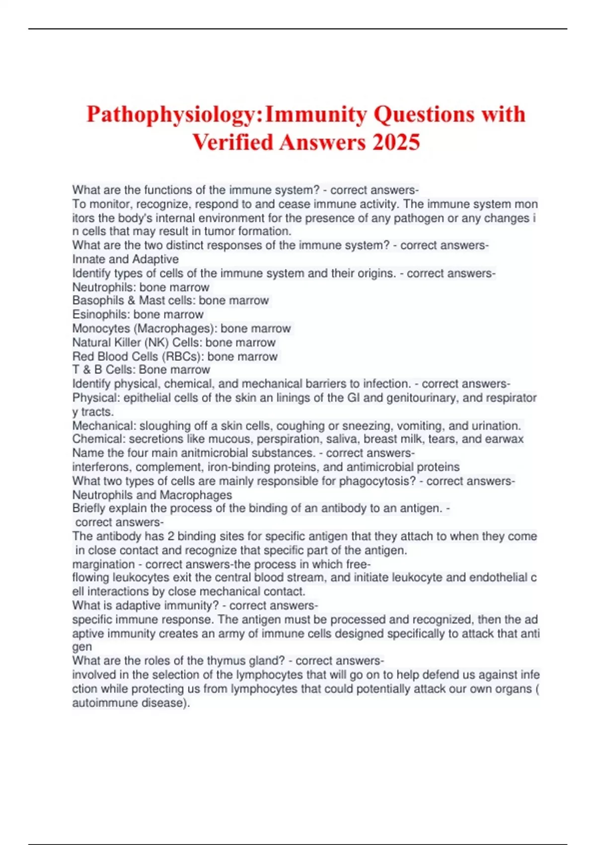 Pathophysiology:Immunity Questions with Verified Answers 2025