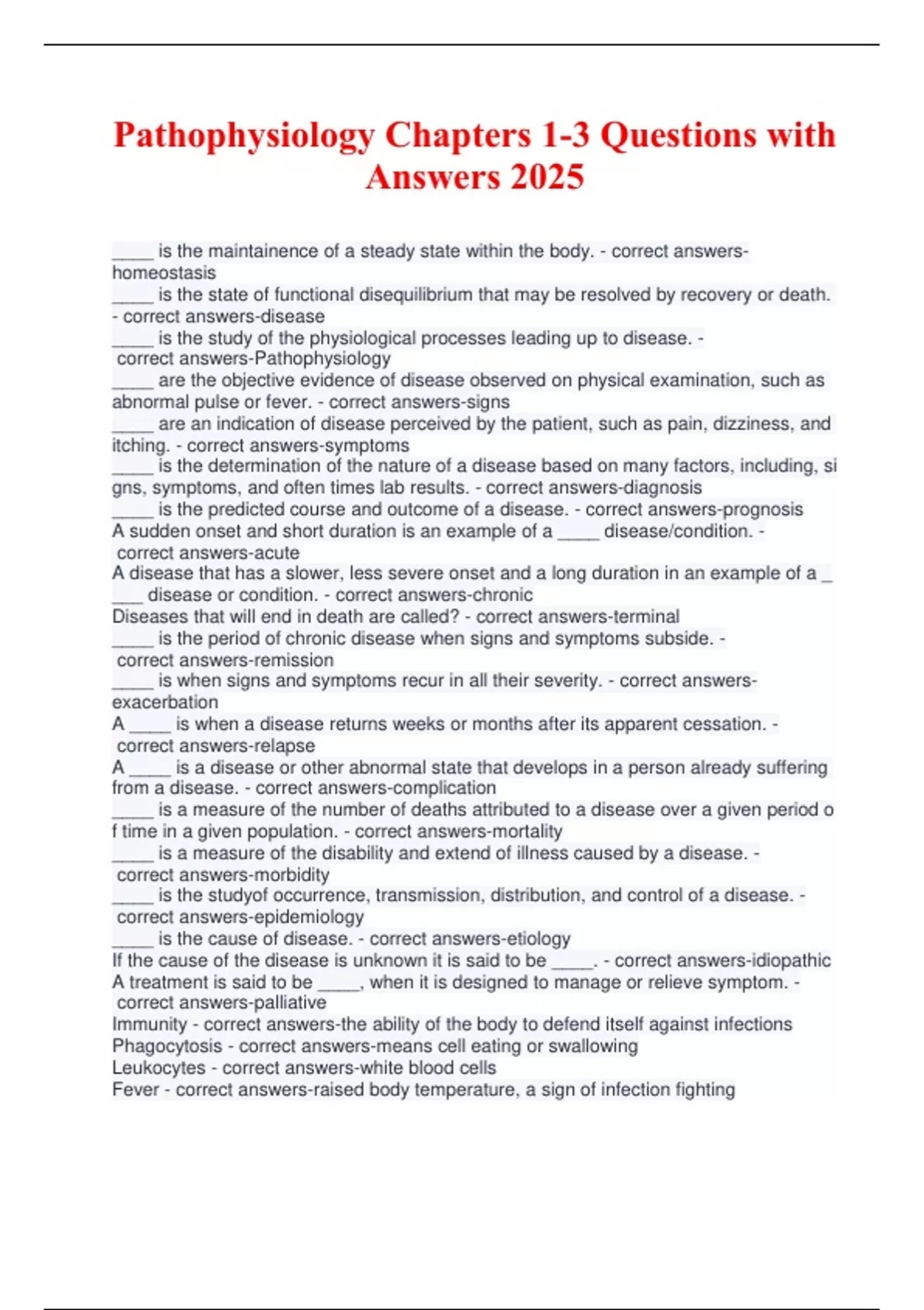 Pathophysiology Chapters 1-3 Questions with Answers 2025