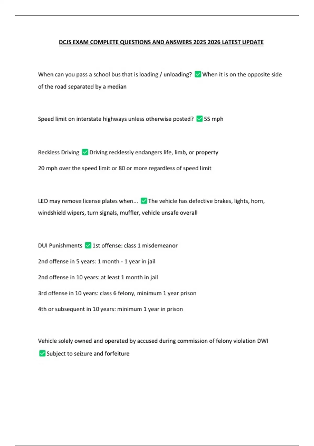 DCJS EXAM COMPLETE QUESTIONS AND ANSWERS 2025 2026 LATEST UPDATE