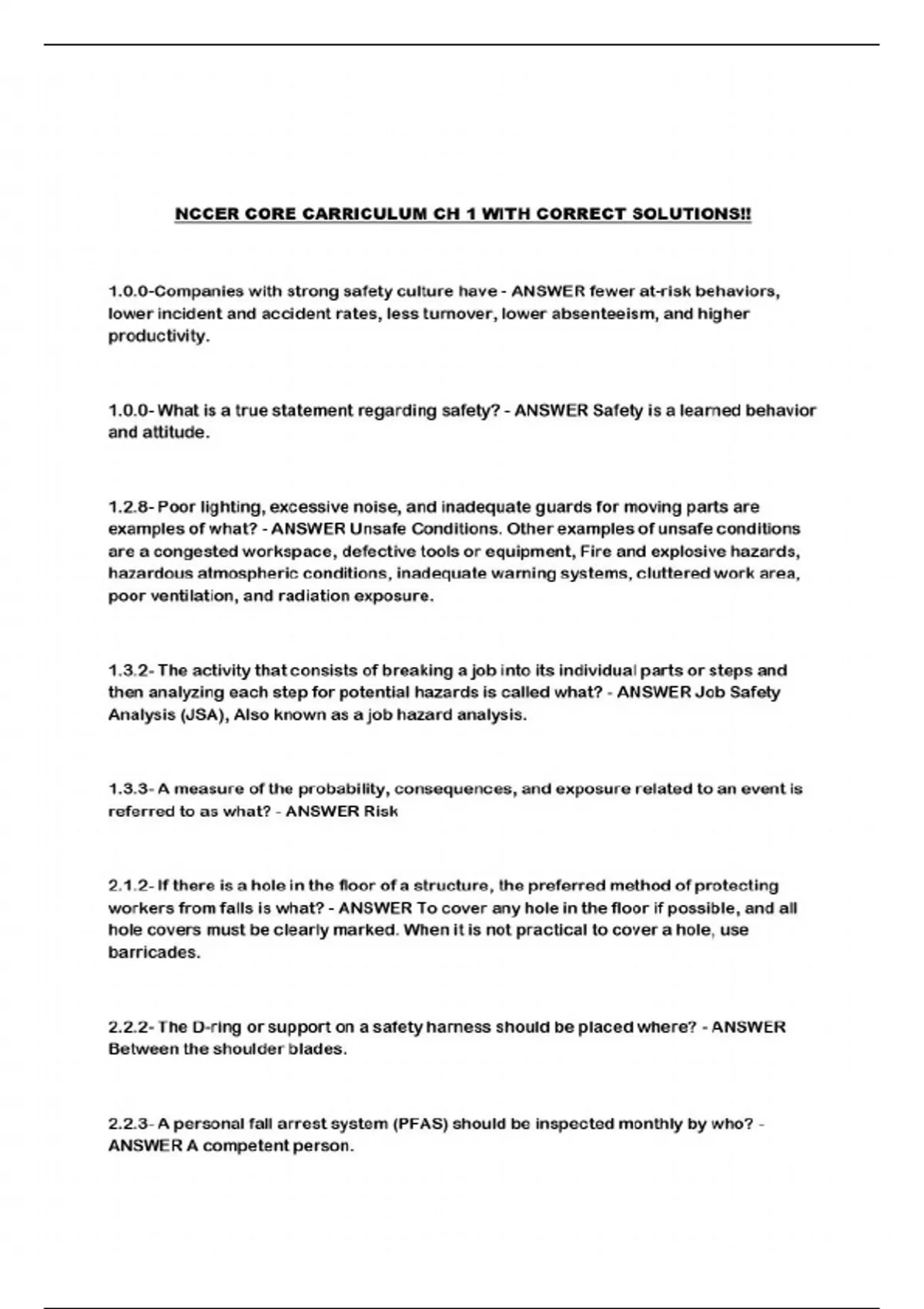 NCCER CORE CARRICULUM CH 1 WITH CORRECT SOLUTIONS!!...