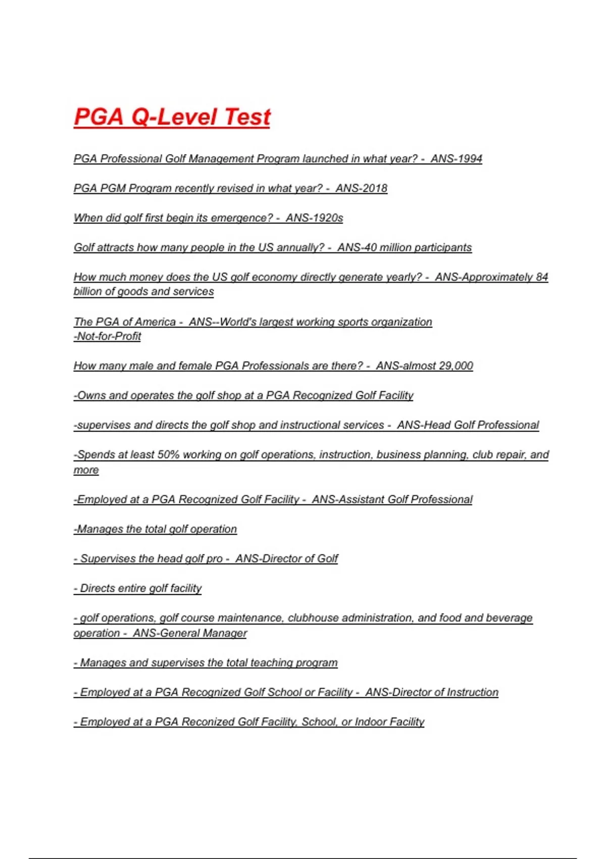 - Employed at a PGA Recognized Golf School or Facility - ANS-Director of Instruction