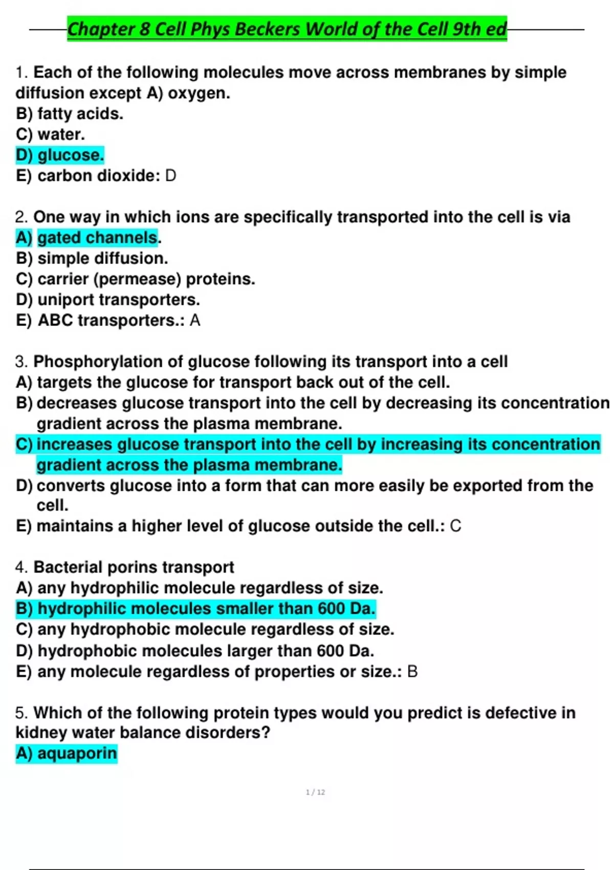 , Chapter 8 Cell Phys Beckers World of the Cell 9th ed