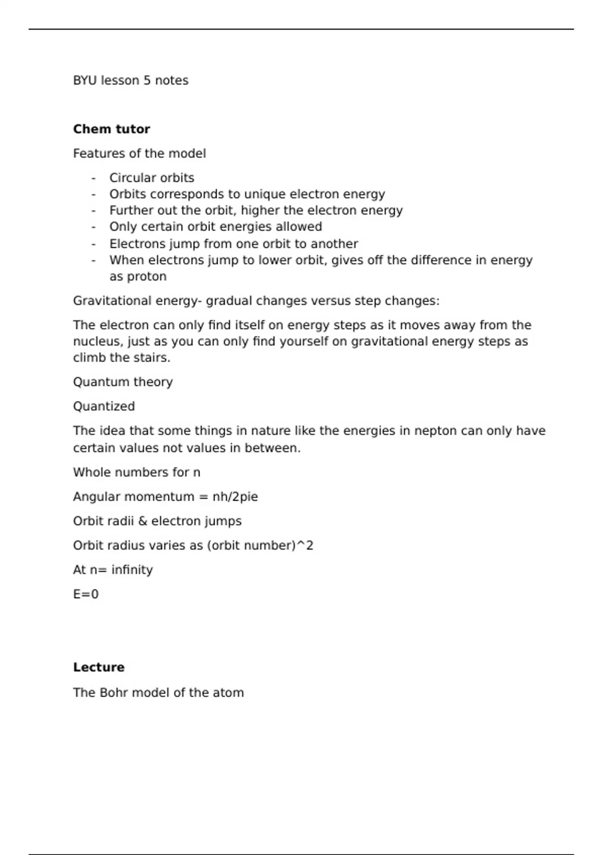 The Bohr model of the atom