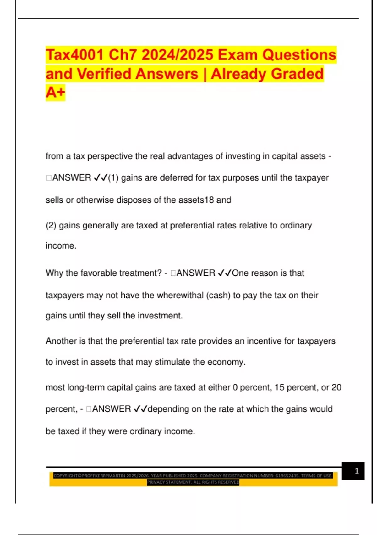 long-term capital gains are taxed - 🧠ANSWER ✔✔at preferential rates.