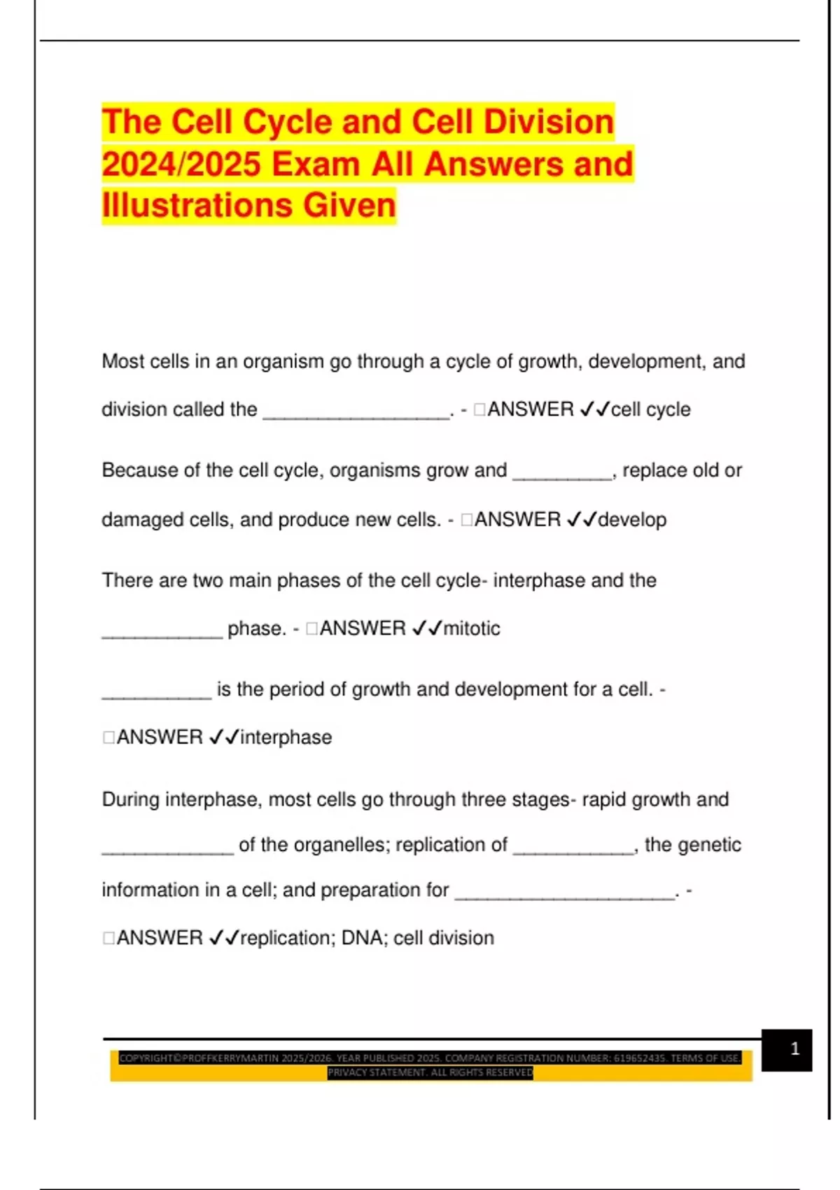 🧠ANSWER ✔✔replication; DNA; cell division