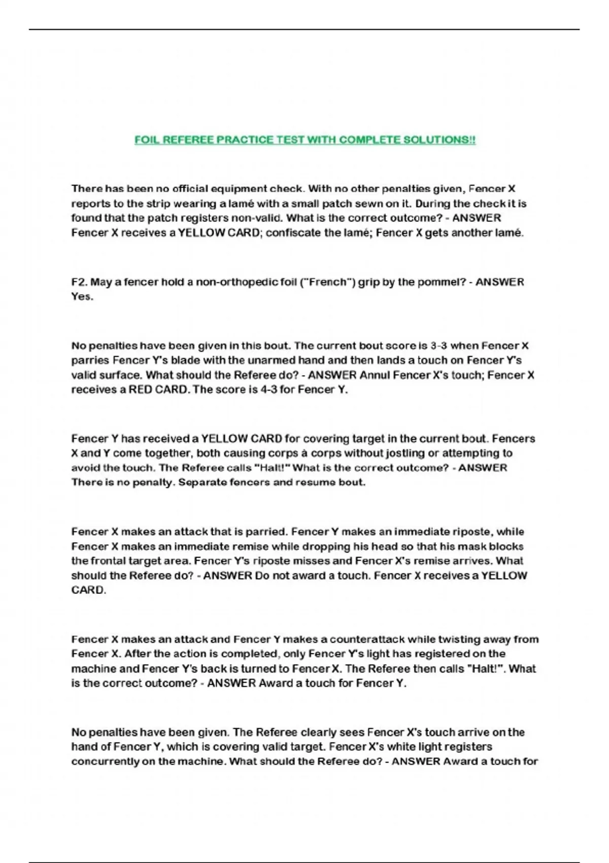 FOIL REFEREE PRACTICE TEST WITH COMPLETE SOLUTIONS!!...