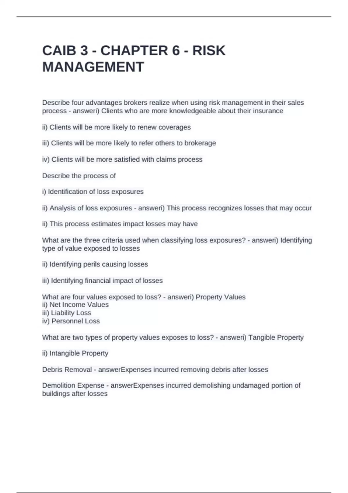 ii) Analysis of loss exposures - answeri) This process recognizes losses that may occur