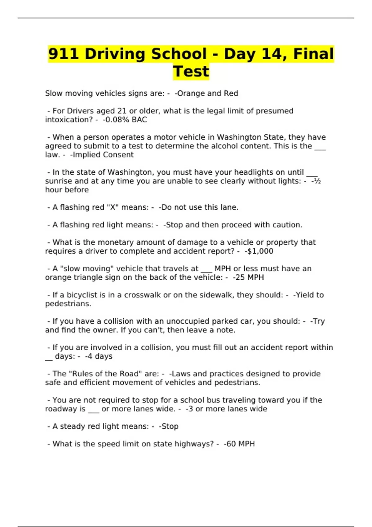 911 Driving School - Day 14, Final