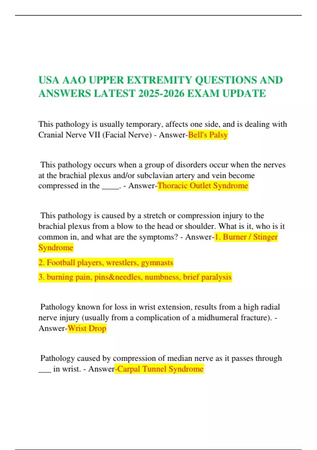 USA AAO UPPER EXTREMITY QUESTIONS AND