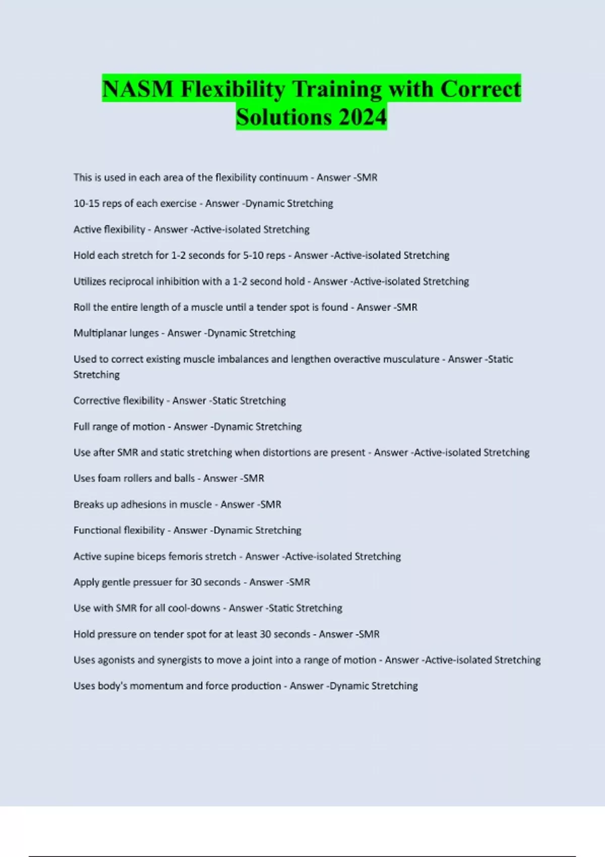NASM Flexibility Training with Correct Solutions 2024/2025