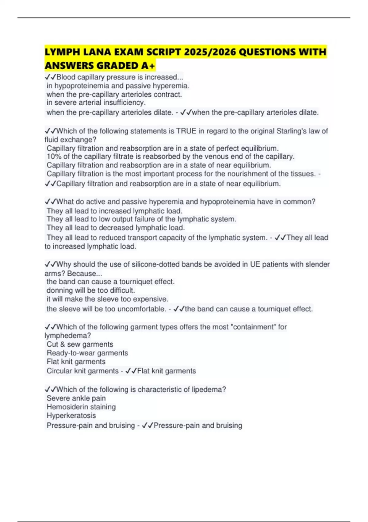 Rapid onset and progression of the lymphedema - ✔✔All