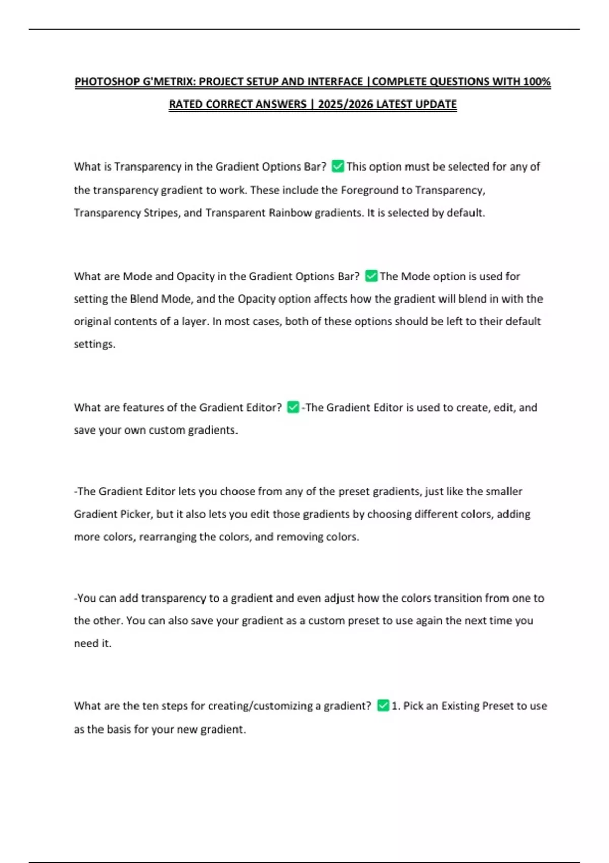 PHOTOSHOP G'METRIX: PROJECT SETUP AND INTERFACE |COMPLETE QUESTIONS WITH 100% RATED CORRECT ANSWERS | 2025/2026 LATEST UPDATE