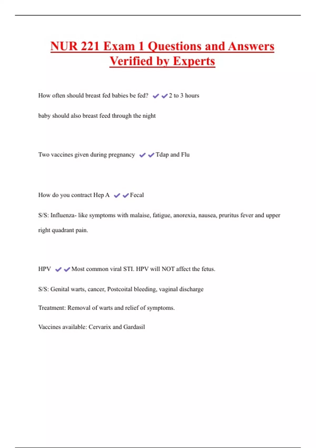 NUR 221 Exam 1 Questions and Answers Verified by Experts