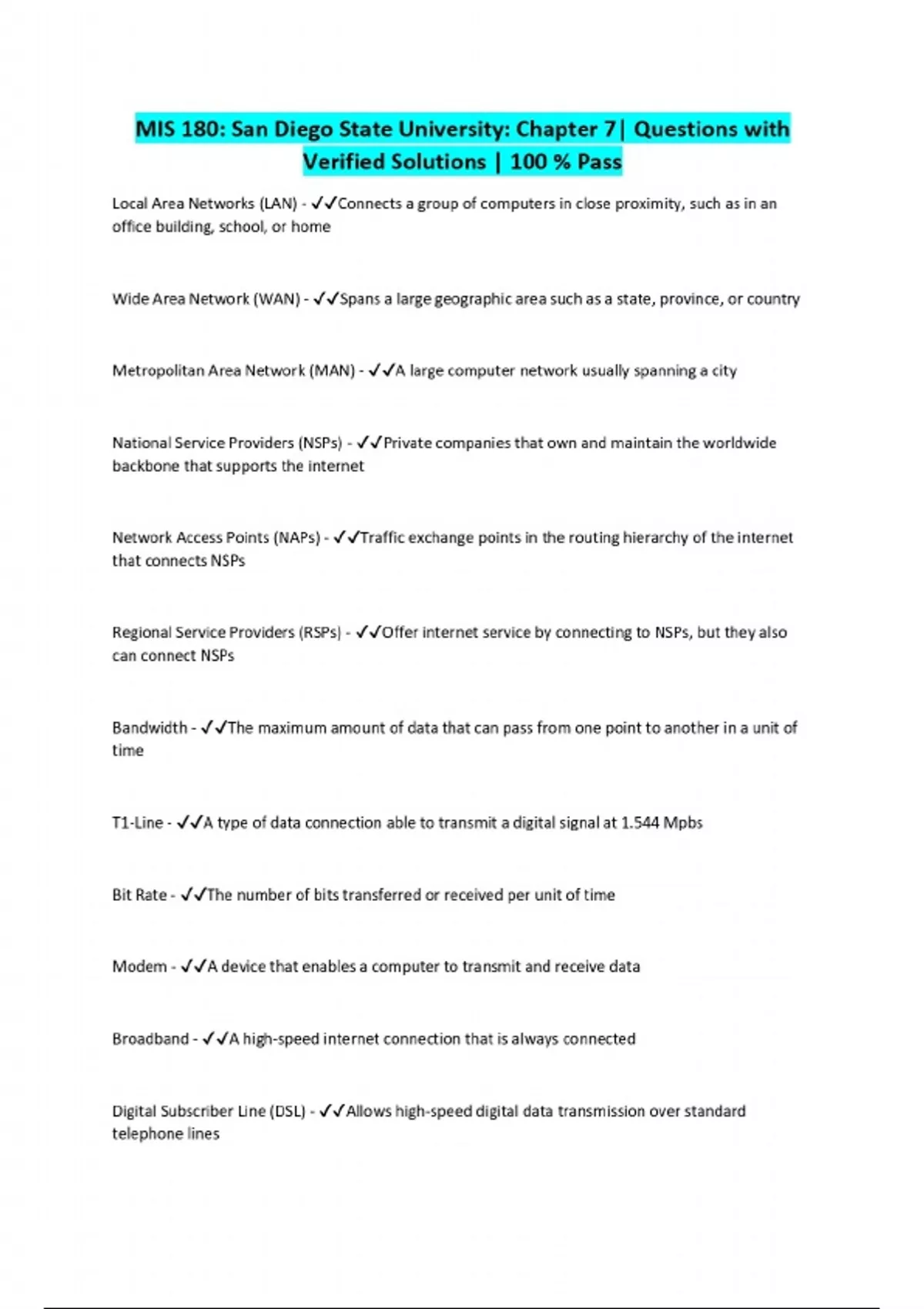 MIS 180: San Diego State University: Chapter 7| Questions with Verified Solutions | 100 % Pass