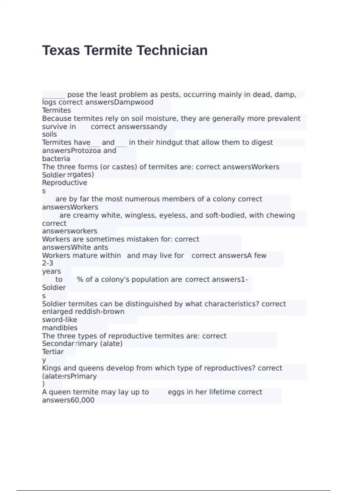 The three forms (or castes) of termites are: correct answersWorkers