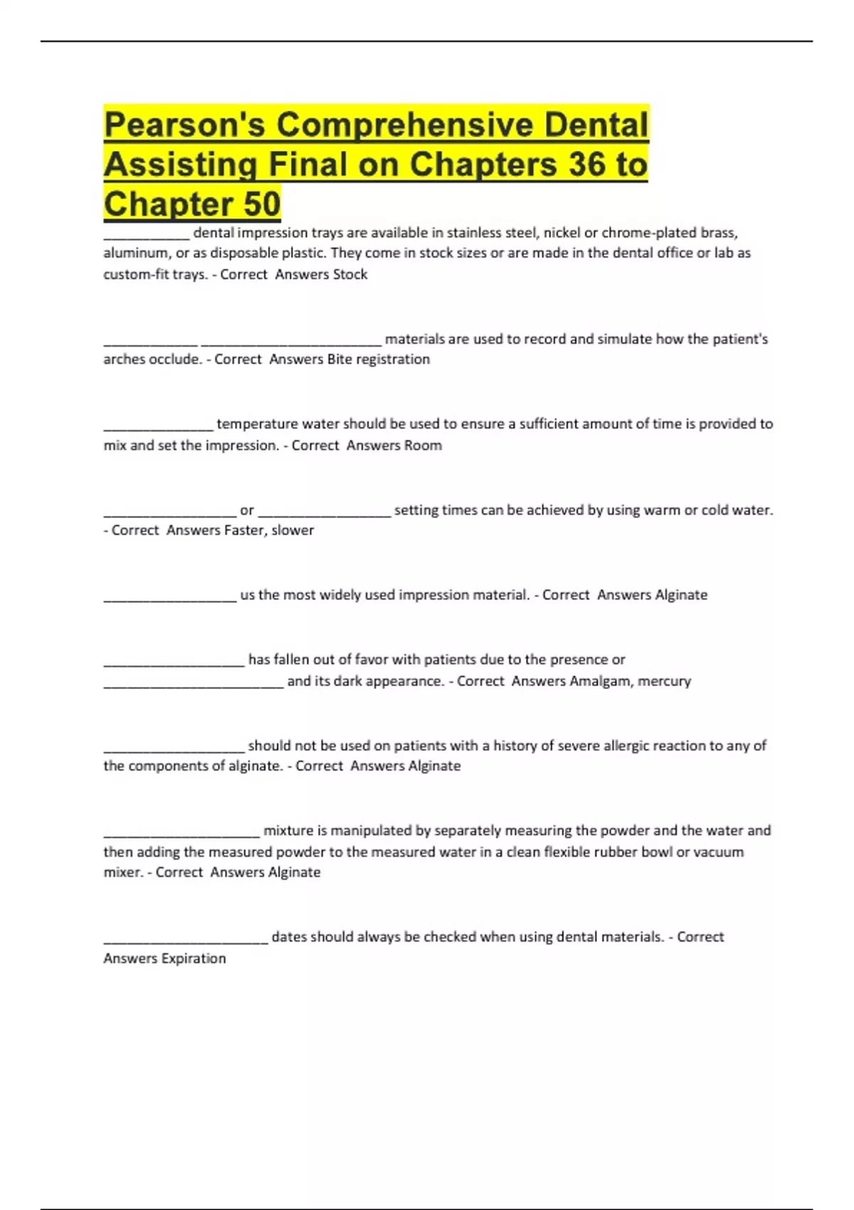 _______________________ and its dark appearance. - Correct Answers Amalgam, mercury