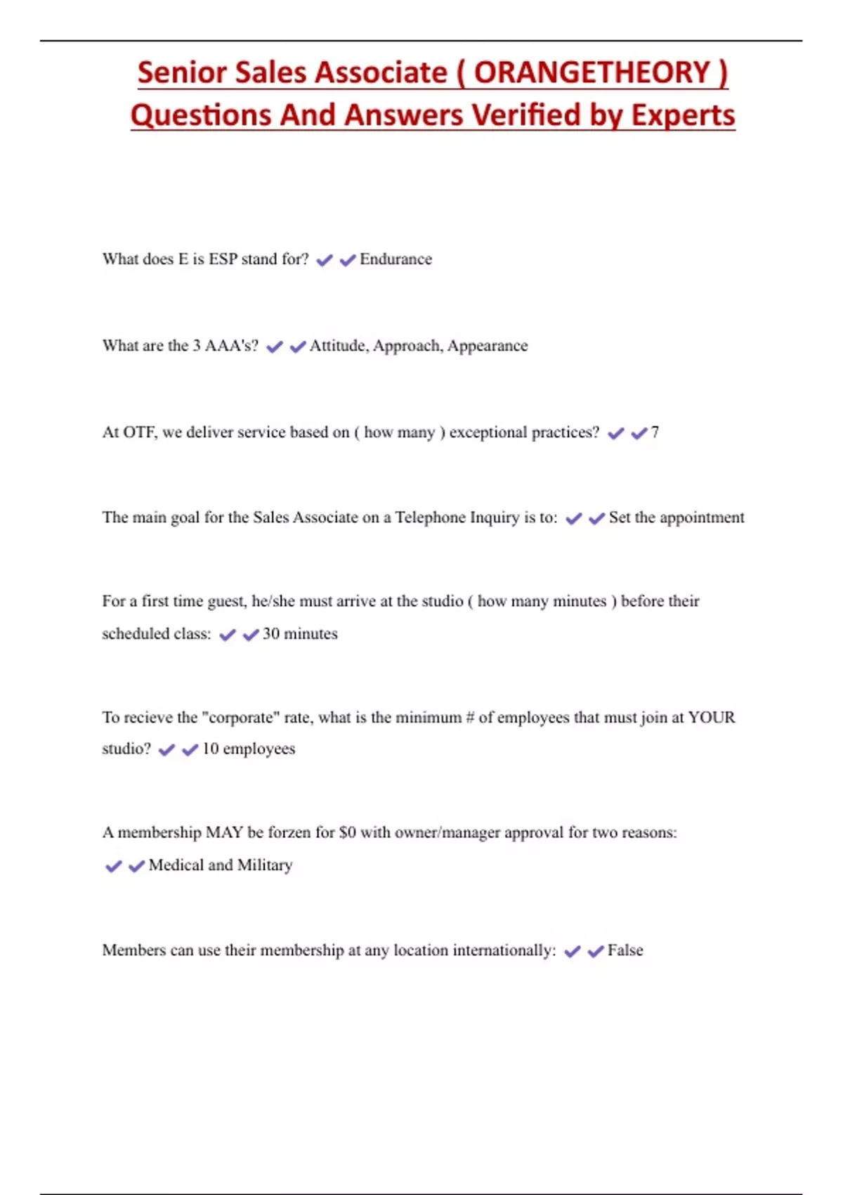 Senior Sales Associate ( ORANGETHEORY ) Questions And Answers Verified by Experts