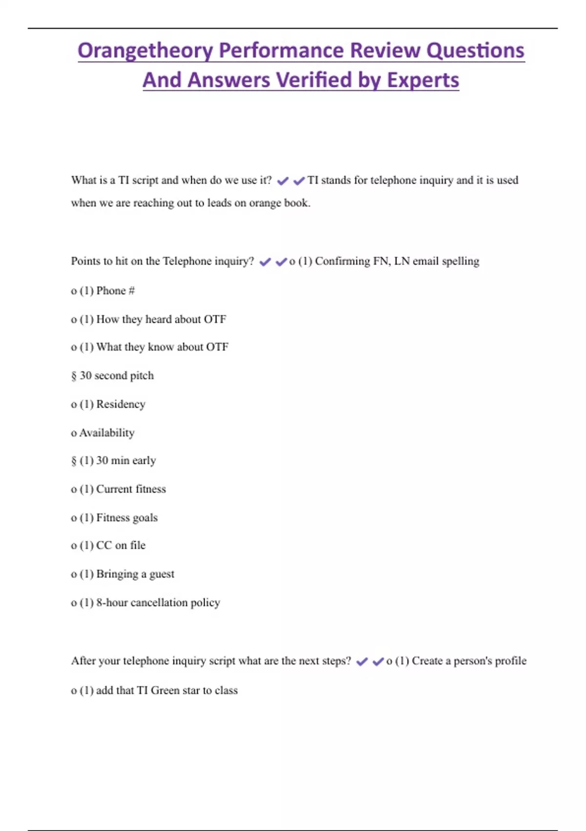 Points to hit on the Telephone inquiry? o (1) Confirming FN, LN email spelling
