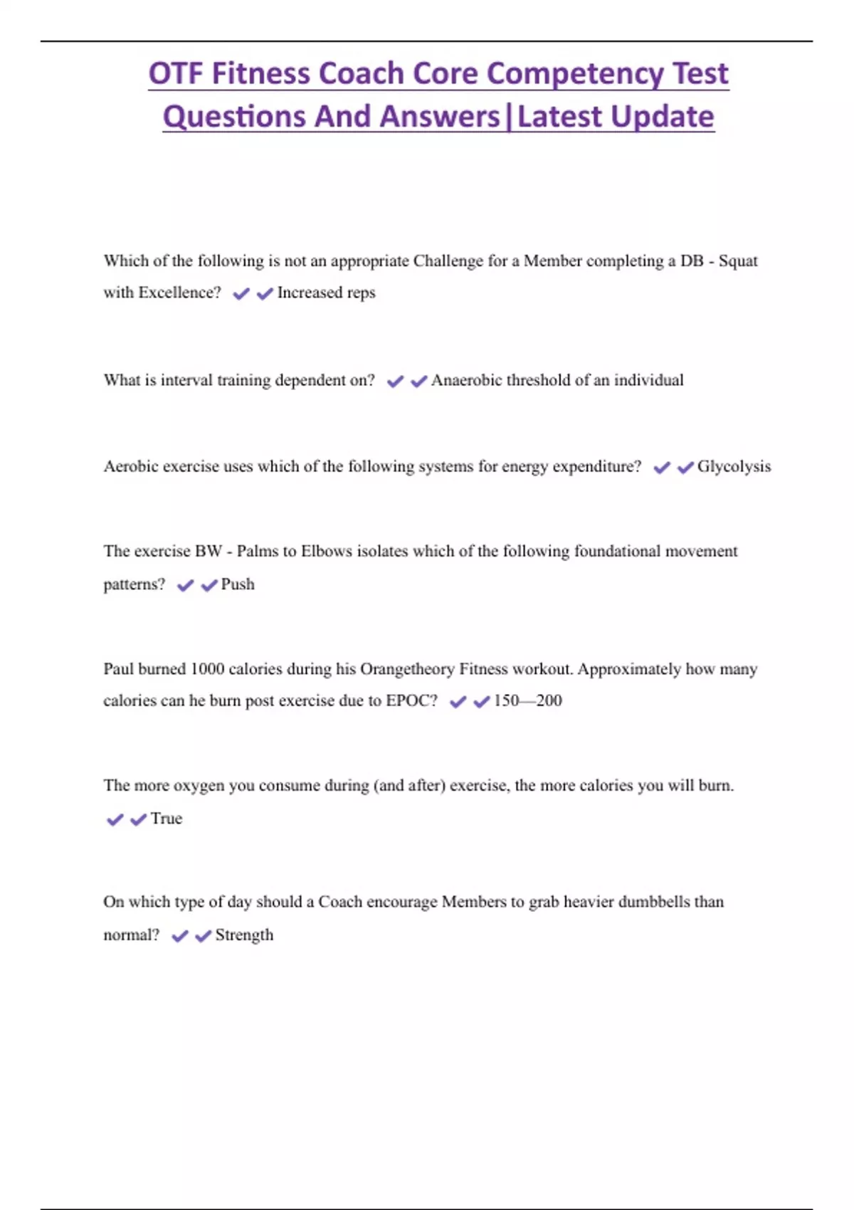, OTF Fitness Coach Core Competency Test