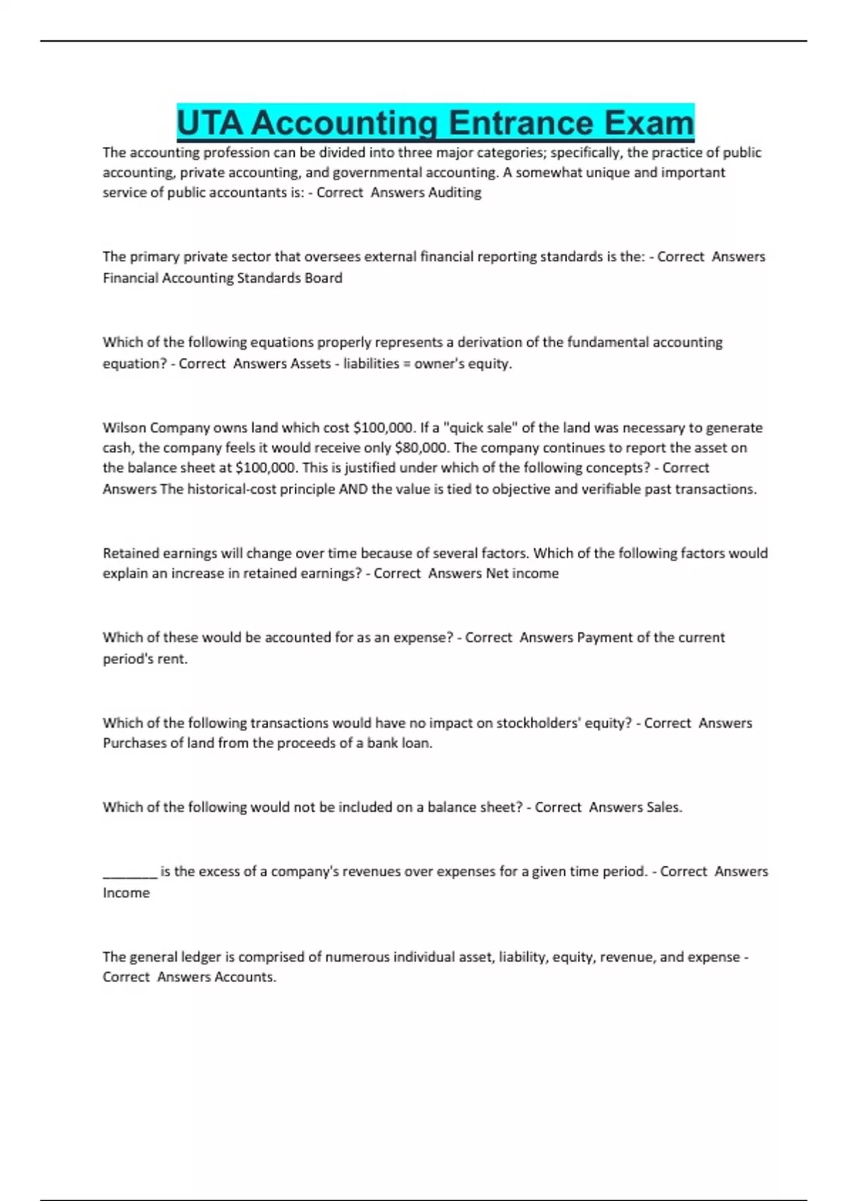 equation? - Correct Answers Assets - liabilities = owner's equity.