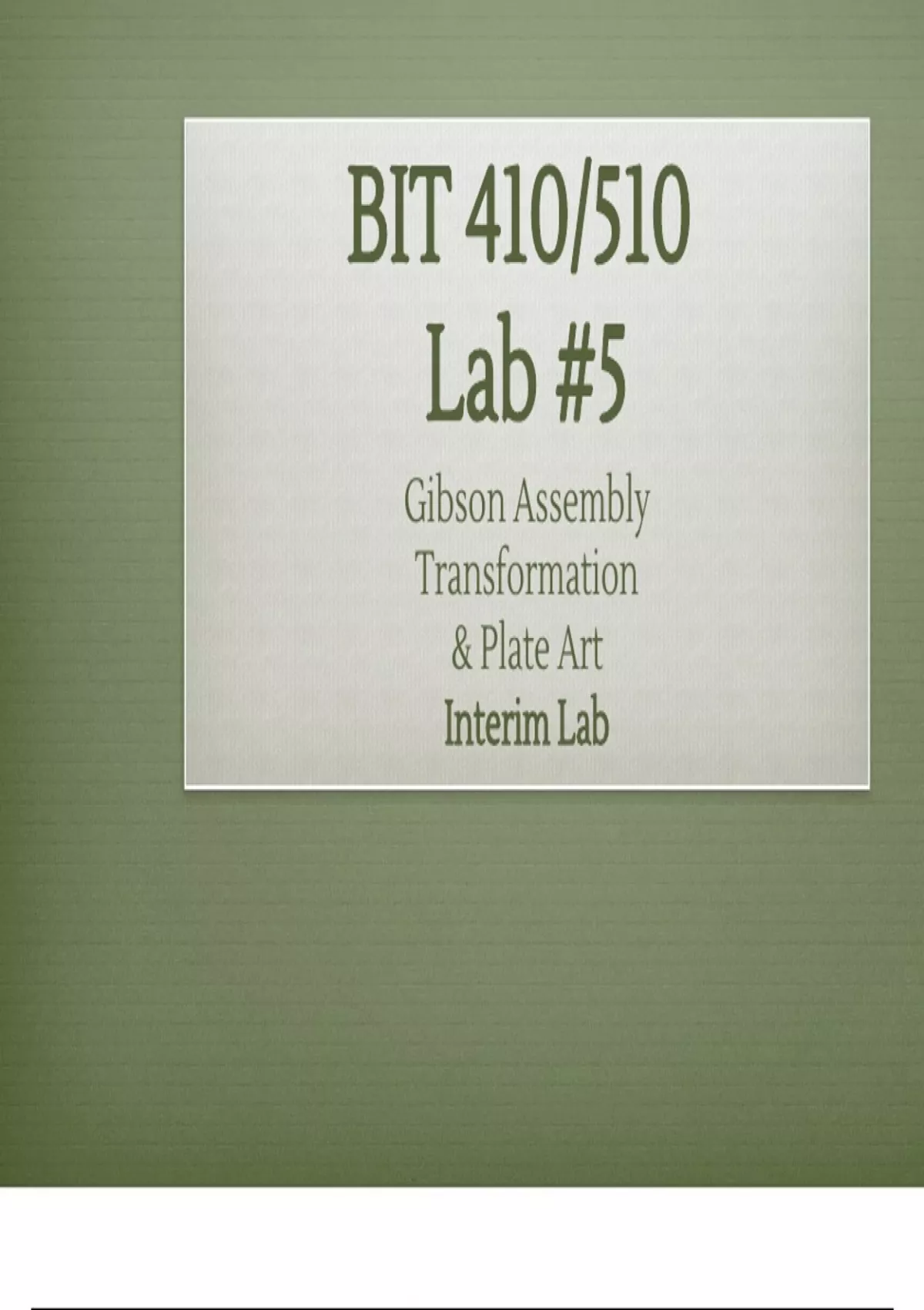 ❖ Activity 1 - Gibson Assembly and Transformation of E. coli