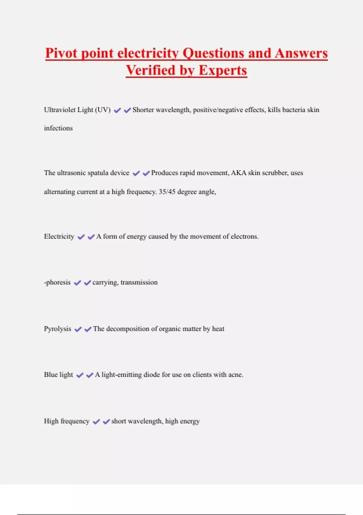 Electrotherapy The use of electrical currents to treat the skin.
