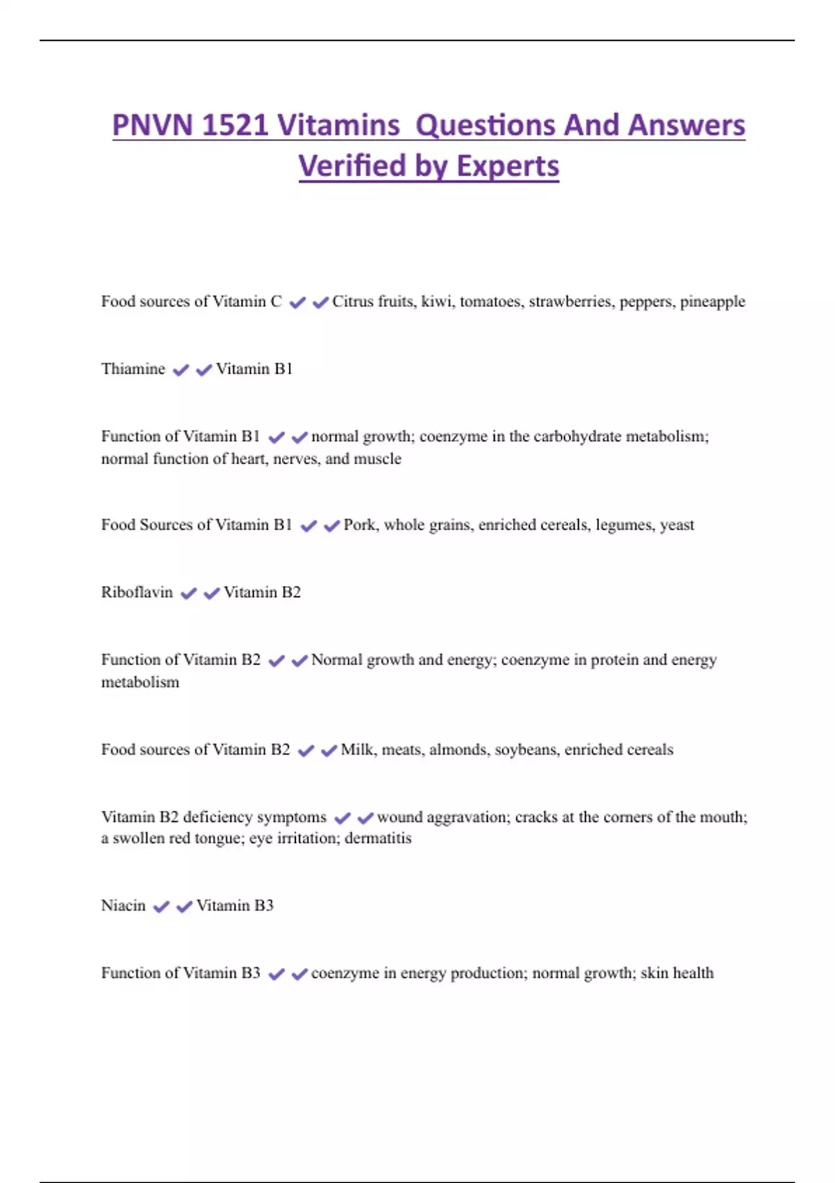 PNVN 1521 Vitamins Questions And Answers Verified by Experts