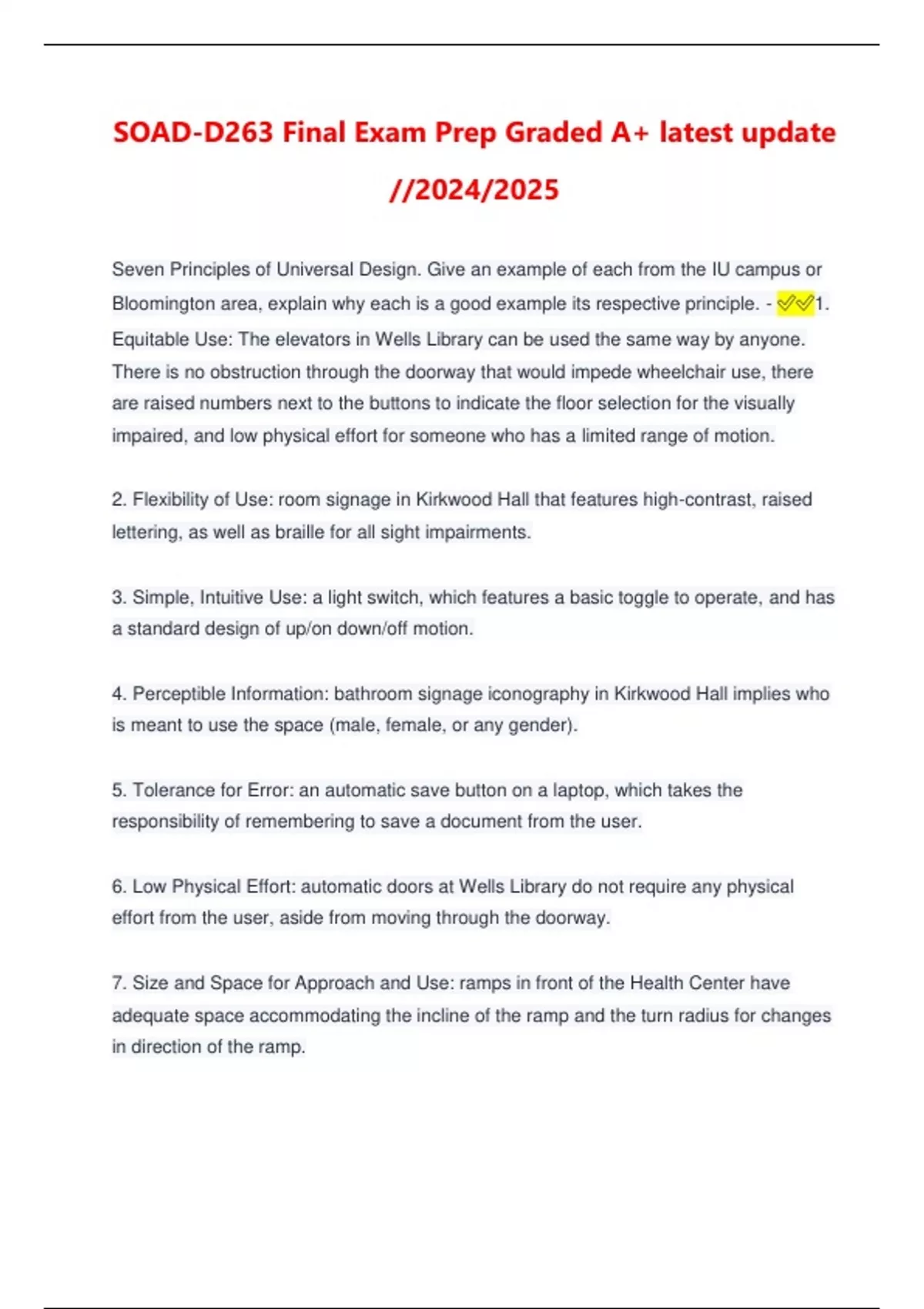 Seven Principles of Universal Design. Give an example of each from the IU campus or