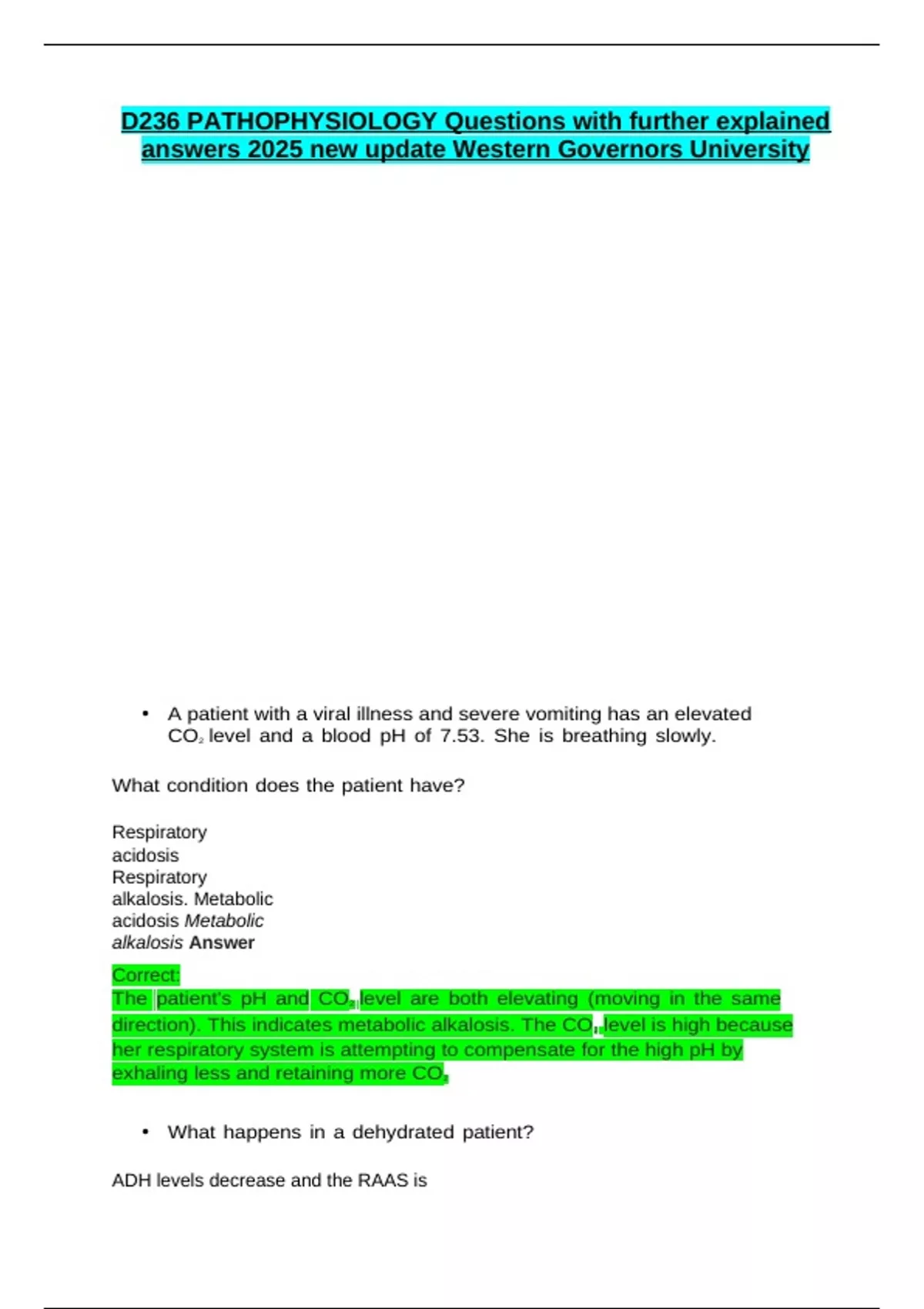 D236 PATHOPHYSIOLOGY Questions with further explained answers 2025 new update Western Governors University