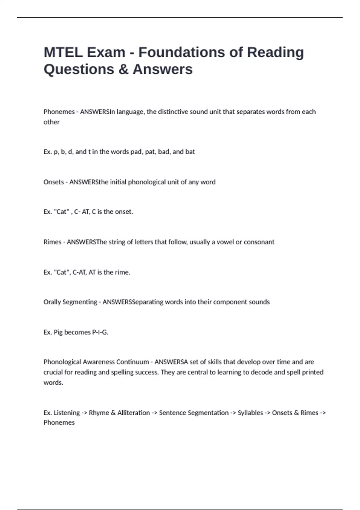 , Phonological Awareness - ANSWERSAwareness of and ability to work with sounds in spoken