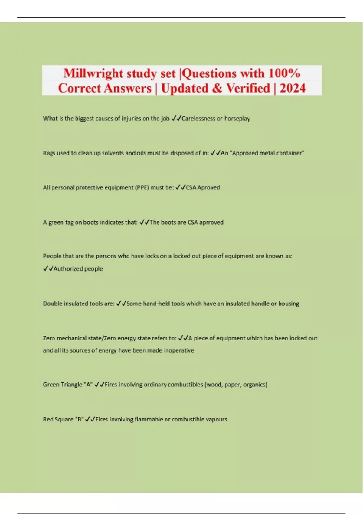 Millwright study set |Questions with 100% Correct Answers | Updated & Verified |