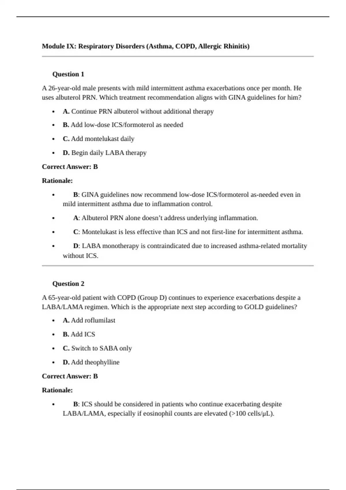 Module IX: Respiratory Disorders (Asthma, COPD, Allergic Rhinitis)